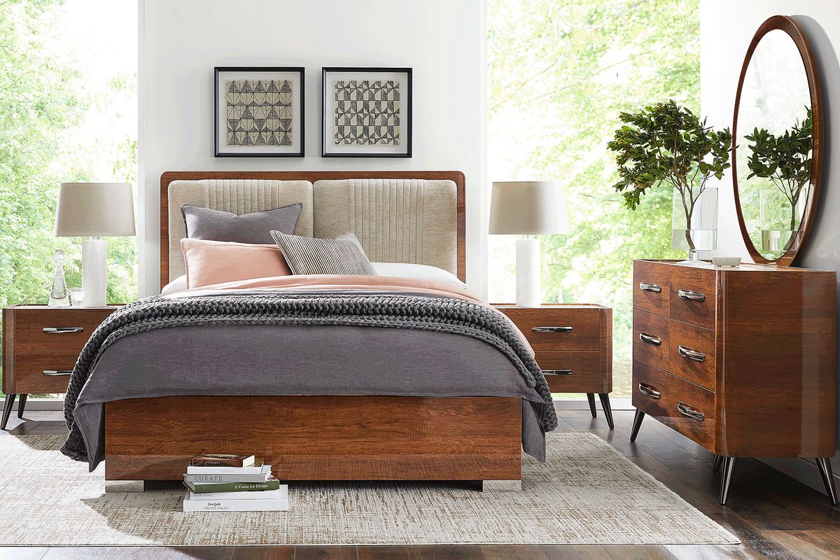 Jenner 7 Pc Walnut Dark Wood Queen Bedroom Set With Dresser, Mirror